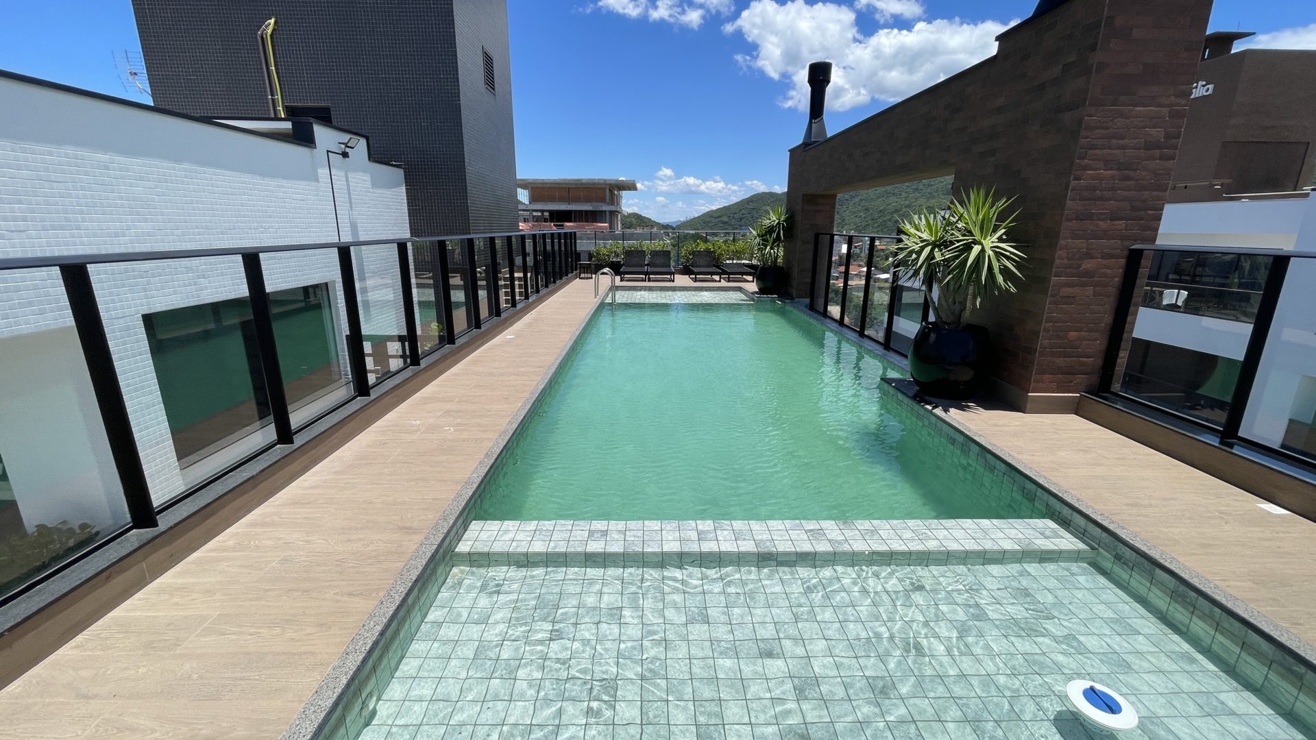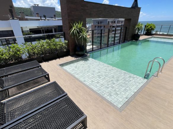 - Building with leisure structure: party room + rooftop pool overlooking the sea;