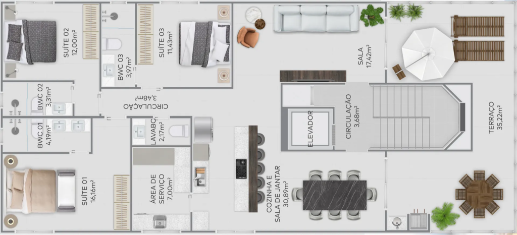 El Desarrollo Ushuaia se encuentra a pocos metros de una de las playas más hermosas de Santa Catarina, cerca de restaurantes, mercado, farmacia y otros establecimientos indispensables en la vida cotidiana.